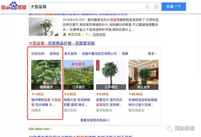 最近,百度推出了其B2B垂直搜索引擎平臺:百度愛采購。如果你細心的話,搜索相關(guān)關(guān)鍵詞,會在第一頁發(fā)現(xiàn)百度愛采購。其主要在搜索頁面結(jié)果端,是以商品列表的形式展現(xiàn)出來4個,之后點擊進去就會到達相關(guān)的列表頁,可查看更多相關(guān)的產(chǎn)品。