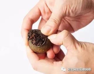 “小青柑”是小青柑普洱茶的簡稱,它是以果皮未著色、未成熟時的純自然青柑和云南普洱熟茶為原料、在沒有任何